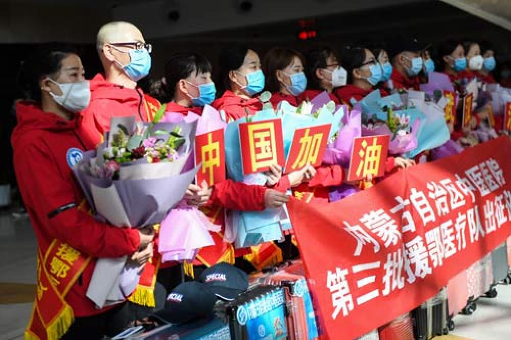 在荆门市区和3个区县、在武汉市各个医院、在江汉方舱、在沌口方舱,许许多多来自内蒙古的白衣战士奋战在救治最前线。管理着1300余张床位,参与救治了237名出院患者,管理的900余名患者中314名为重症和危重病例……从“60”后到“90”后,从抗击过非典的“老战士”到推迟婚期的准新娘,医护人员一批又一批逆行,留下了一个个让人热泪盈眶的场景,一个个激励人心的故事。
