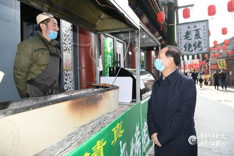 3月29日,自治区党委书记、人大常委会主任石泰峰在呼和浩特市玉泉区塞上街了解商户经营情况。内蒙古日报社融媒体记者 袁永红 摄