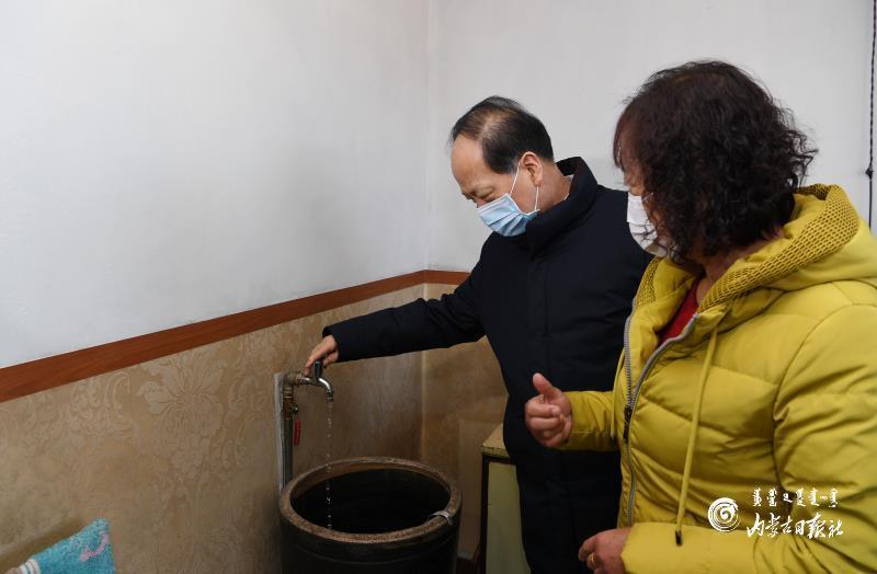 4月1日,自治区党委书记、人大常委会主任石泰峰来到乌兰察布市四子王旗东八号乡梁底行政村西房子自然村走访建档立卡贫困户,了解帮扶和饮水安全等生活情况。记者 袁永红 摄