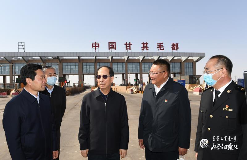 4月7日,自治区党委书记、人大常委会主任石泰峰来到巴彦淖尔市甘其毛都口岸,了解通关联管区疫情管控和货运通关情况。内蒙古日报社融媒体记者 袁永红 摄