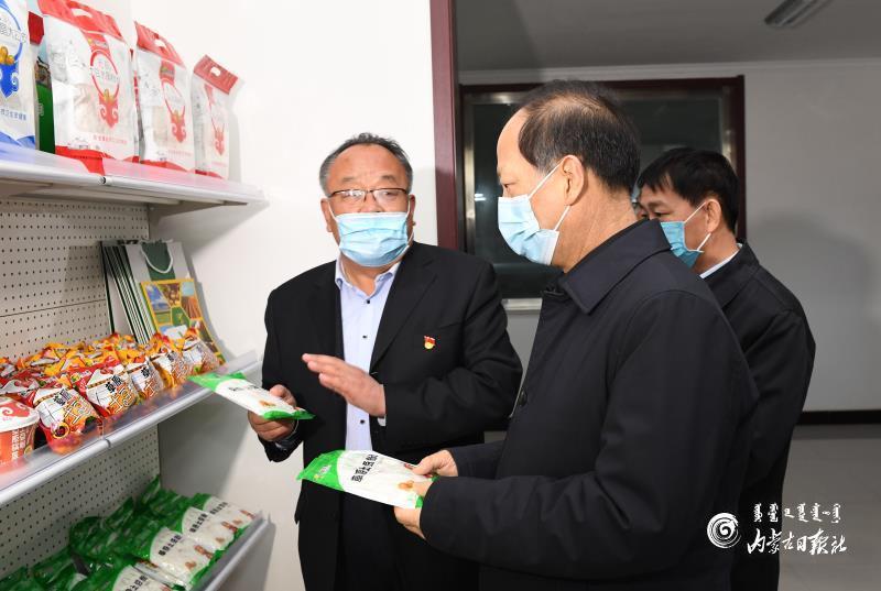 4月9日,自治区党委书记、人大常委会主任石泰峰来到包头市固阳县农牧业产业园区,调研田丰农牧业公司粉丝加工项目经营生产情况。内蒙古日报社融媒体记者 袁永红 摄