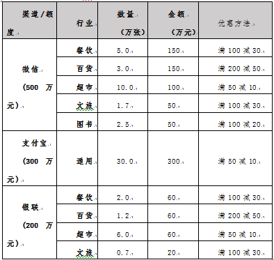 再如,为保障消费券发放的效果,我们坚持竞争机制,与微信、支付宝、银联云闪付三个平台企业,通过有效监督调动平台企业的积极性,比如前期微信消费券发放工作推进有些缓慢,我们第一时间作出反应,通过积极的协调、沟通,保证了微信消费券如期上线。