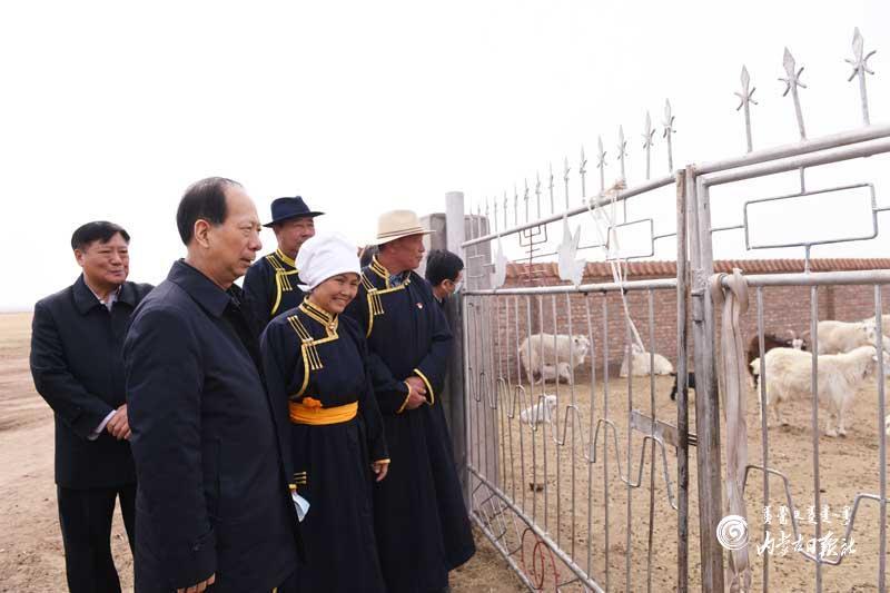 4月14日,自治区党委书记、人大常委会主任石泰峰来到呼伦贝尔市新巴尔虎左旗阿木古郎镇白音敖包嘎查,走访牧户了解生产生活和接羔保育情况。 内蒙古日报社融媒体记者 袁永红 摄