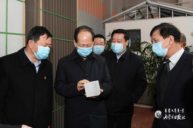 4月22日,自治区党委书记、人大常委会主任石泰峰深入鄂尔多斯市内蒙古建能兴辉陶瓷公司调研。内蒙古日报社融媒体记者 袁永红 摄石泰峰对沿黄地区产业高质量发展十分关注。他先后来到建能兴辉、蒙泰、大唐托电、久泰新材料等公司,走进车间、展厅和施工现场,详细了解企业生产运营、项目建设和产品工艺特性等情况。他强调,要注重抓好传统产业转型升级,用先进适用技术改造提升资源型产业,最大限度降低能耗、减少排放,提高资源综合利用率和产品精深加工度,不断延伸产业链、提高附加值,提升产业发展质量和效益。在考察达拉特旗光伏发电应用领跑基地项目时,石泰峰叮嘱当地要加快建设进度,争取早日建成达效。