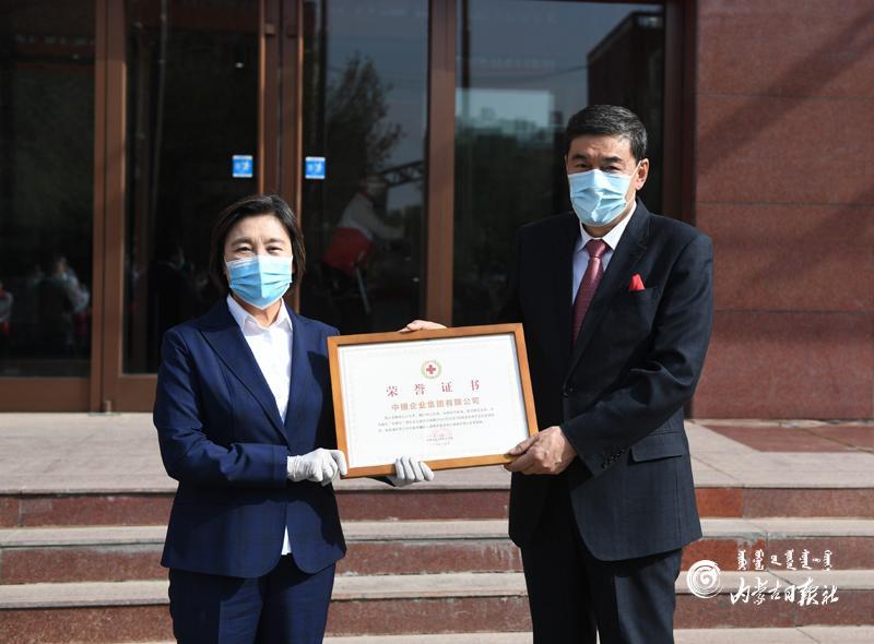 中植企业集团向内蒙古“光明行”等公益项目及疫情防控捐赠爱心款物 布小林颁发荣誉证书