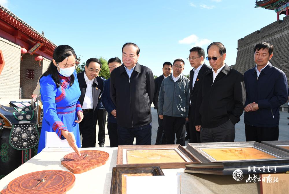 8月29日,中共中央政治局委员、中宣部部长黄坤明在自治区党委书记、人大常委会主任石泰峰陪同下,来到兴安盟科右中旗旅客集散中心,了解文旅产品、产业规划及项目建设情况。内蒙古日报社融媒体记者袁永红摄